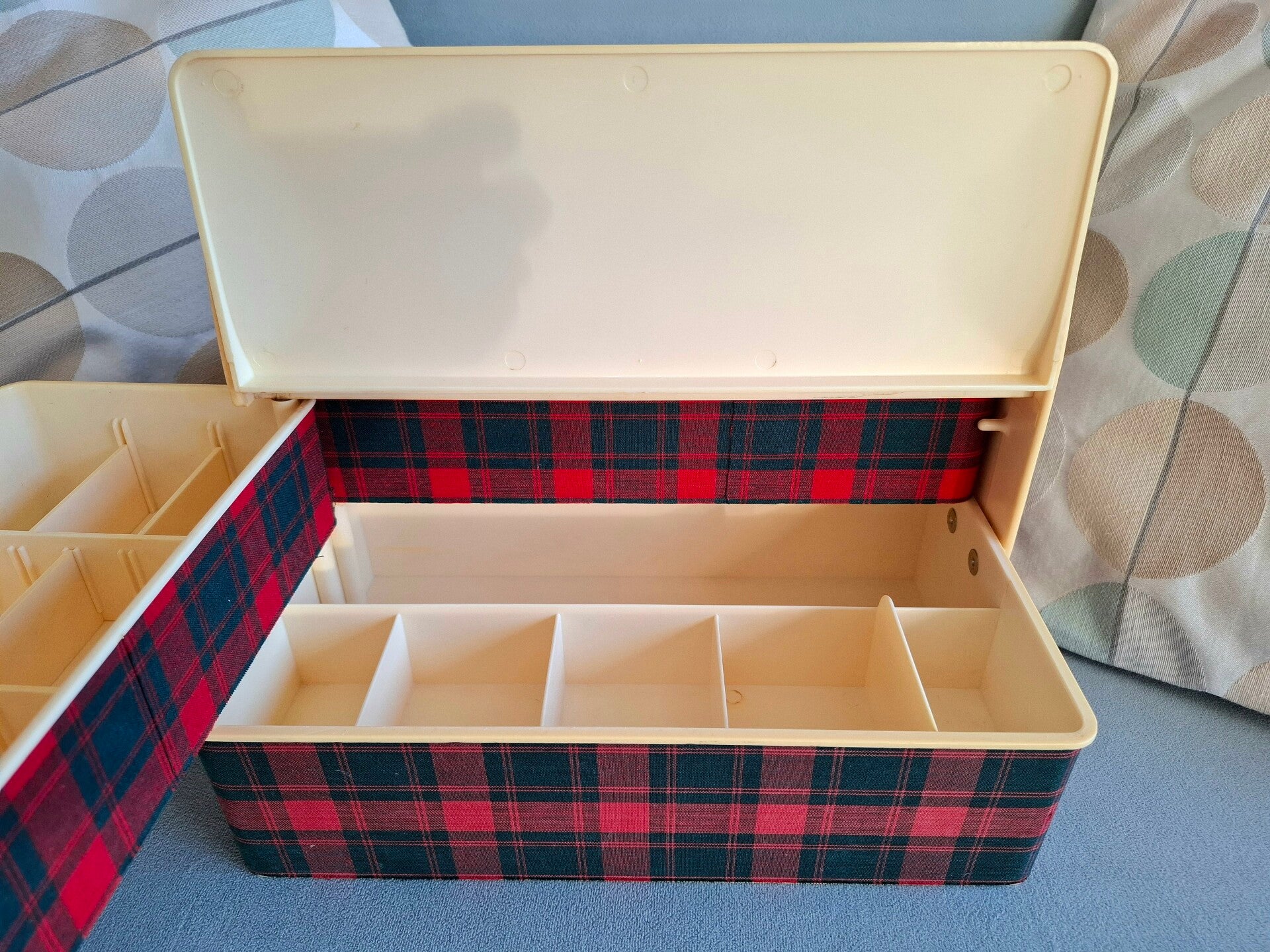 Vintage naaibox of knutseldoos Schotse ruit